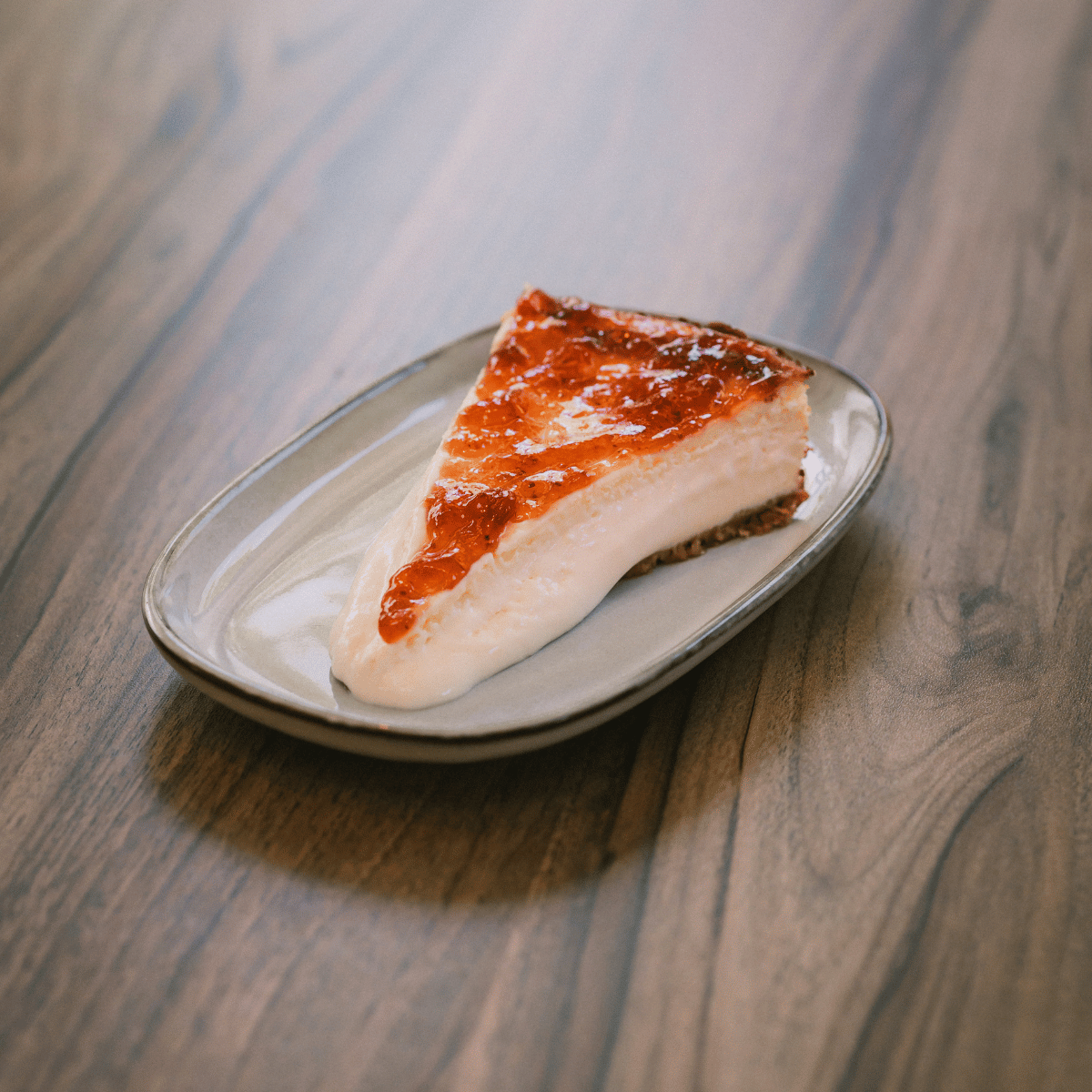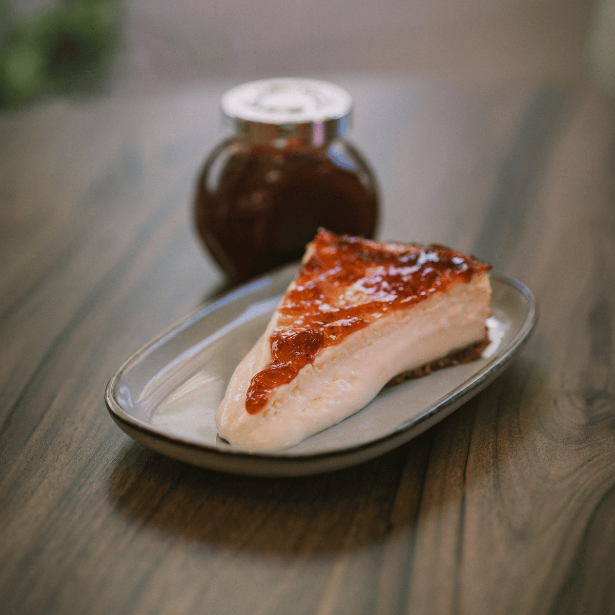 New York style: base crujiente, relleno suave y mermelada de fresa. Sabe a hogar.